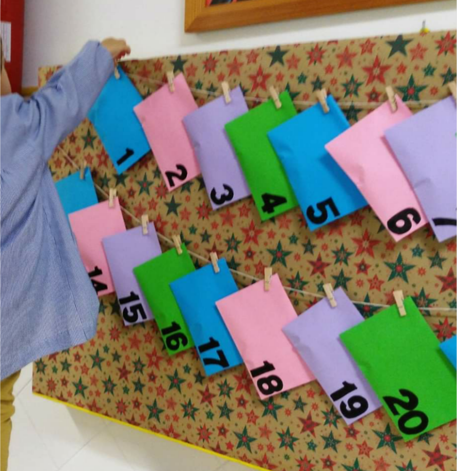 Iníciase no colexio este tempo de Advento, o venres 30 de novembro, coa colocación no patio do colexio dun calendario de propósitos que o P.Vidal elaborou. Tamén hai nas aulas outros calendarios que se adaptan a idáde dos alumnos e alumnas e que permiten traballar con ilusión este tempo de preparación para o Nadal.