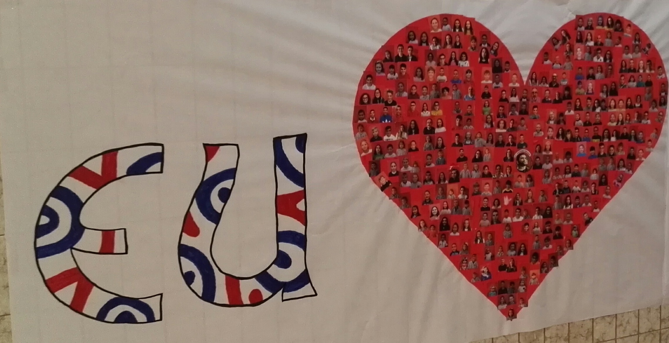 Este curso escolar 2018-19 ten como lema:I ♥ … E no colexio quixemos adaptalo á nosa realidade, ao que somos. En primeiro lugar, traducímolo ao galego e creamos un corazón con tódalas fotos dos que formamos a comunidade educativa, tendo no centro a San Xerome, o exemplo a seguir. Completámolo con palabras, expresións ou símbolos que expresaran os nosos sentimentos e emocións; fíxose uso de distintos idiomas fomentando así o plurilingüismo, principalmente o galego. Tamén pretendiamos potenciar o traballo en equipo e colaboración entre os distintos plans e departamentos: EDLG, Innovación e Plan de Acción Titorial