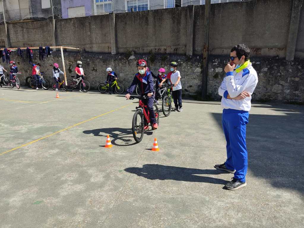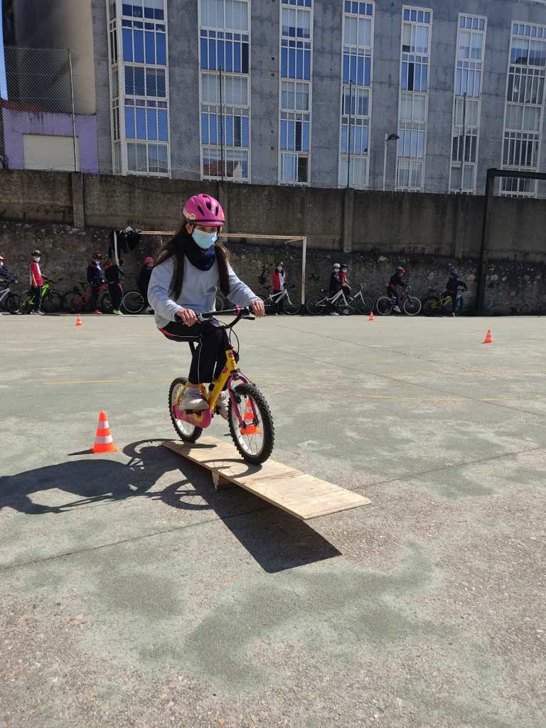 Esta actividad está integrada dentro del ámbito de deporte escolar (XOGADE). Los niños y niñas realizaron con sus bicicletas circuitos para mejorar el manejo de las mismas, alternando práctica con aspectos teóricos de este deporte.