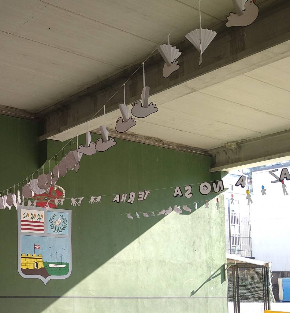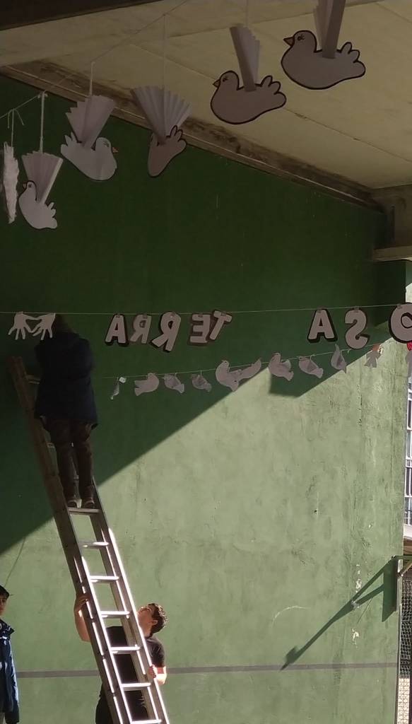 Este luns 30 de xaneiro de 2023 os alumnos do Colexio PP. Somascos da Guarda – Fundación Educere celebraron o Día da Paz cunha actividade titulada: “Grilandas para a Paz”. Na semana previa a este día o alumnado elaborou, en obradoiros de manualidades, diversos símbolos de Paz en cor branca (pombas, mans, corazóns, algodóns, textos de paz, etc.) que logo foron colocados en longas grilandas para que atravesaran o patio cuberto do colexio como unha homenaxe da comunidade educativa a este día tan importante.