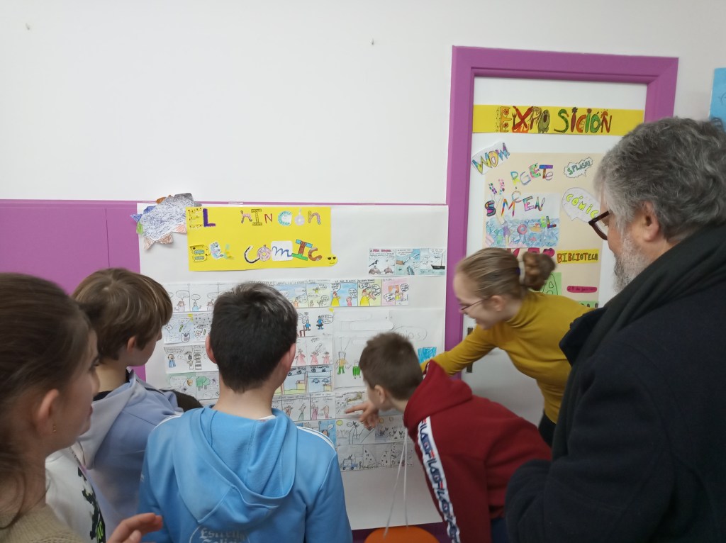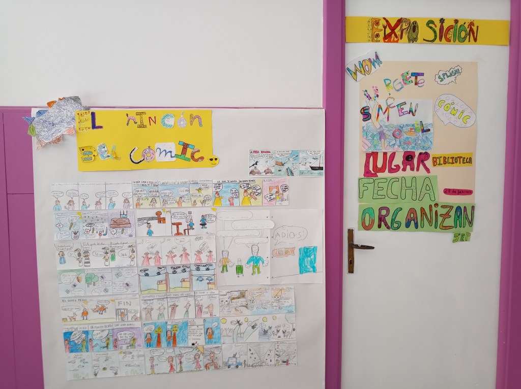 Hoy, martes 28 de febrero, fue inaugurada en la biblioteca del centro, la exposición de cómics realizada por el alumnado de 5º de E. Primaria, tras el taller impartido días atrás por el dibujante José Carlos Castro.