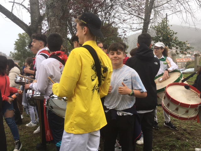 O punto de encontro deste singular evento, ao que asistimos os cursos de 2, 3 e 4 de ESO, foi o Montiño. E, como vedes, pásamolo moi ben facendo barullo a esgalla, trala lectura do noso manifesto, que correu a cargo dos alumnos de 4, Carmen e Marcos, co toque de gracia de Gabriel, na percusión.