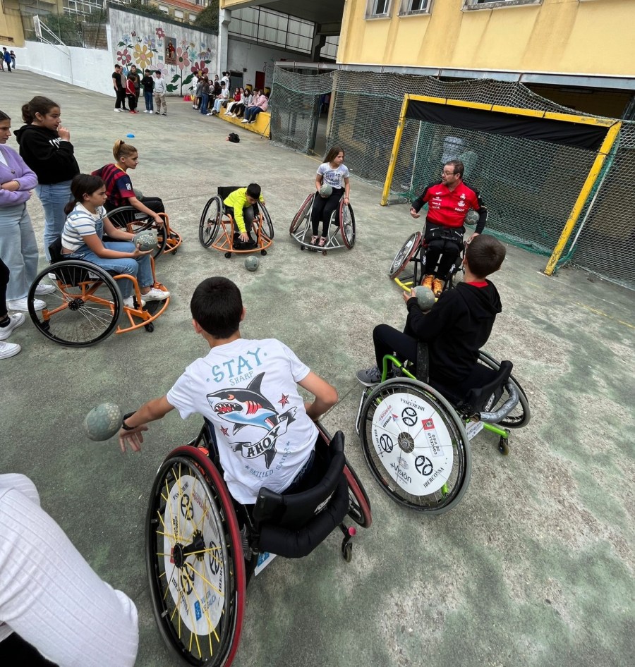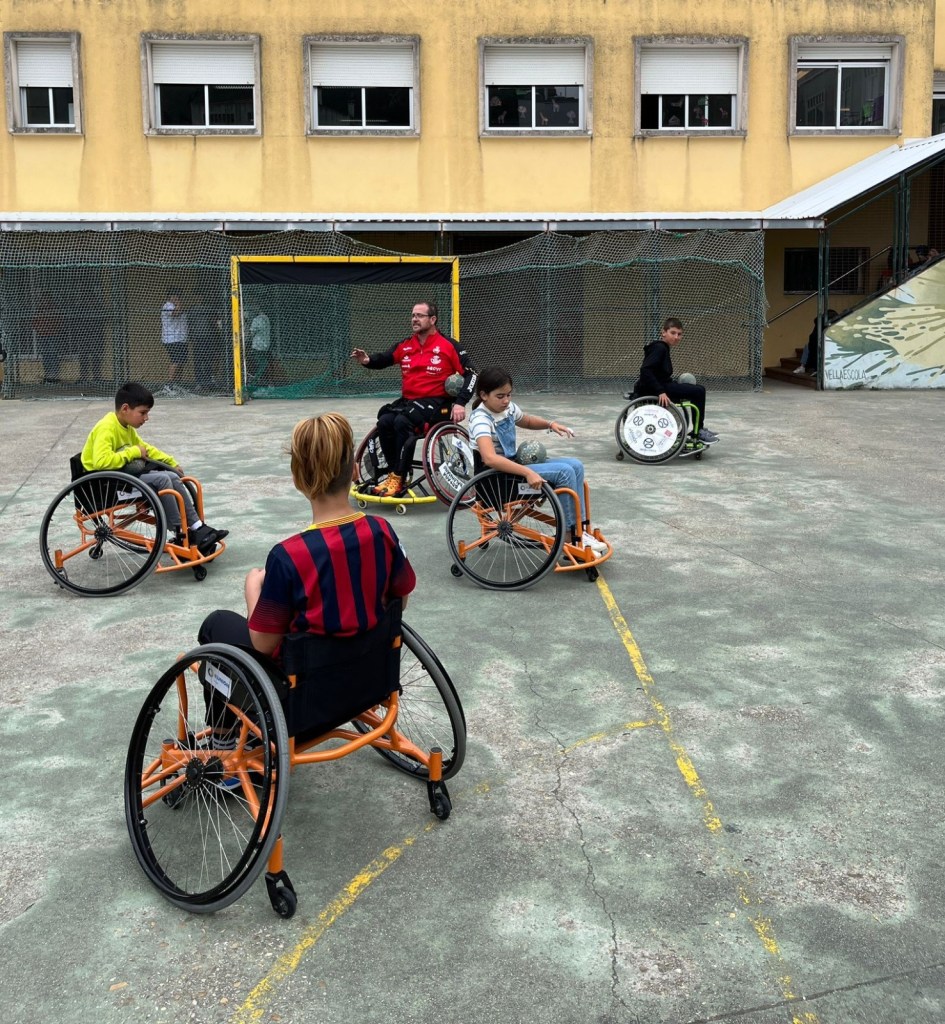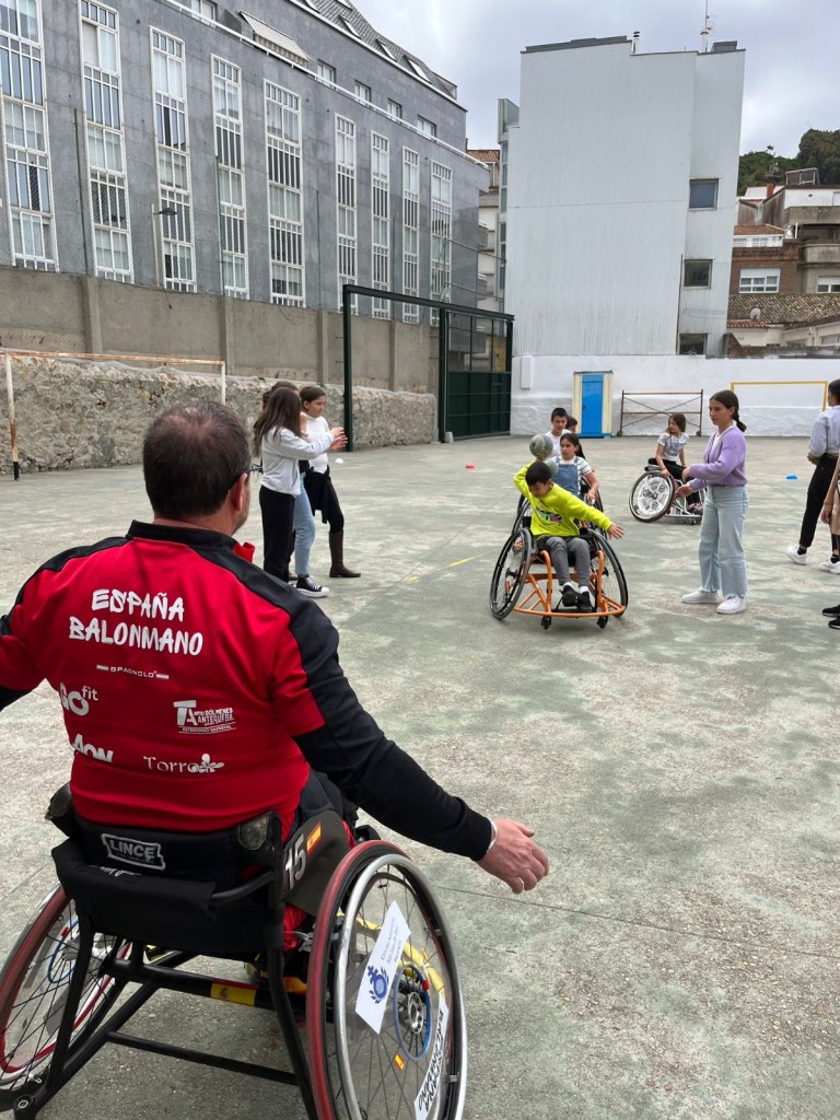El selecionador nacional de Balonmano en silla de ruedas, Ricardo Alonso, gran impulsor de esta disciplina, ha impartido una charla hoy, miércoles 26 de abril, en el gimnasio de nuestro colegio, junto con unas clases prácticas en el patio desde 5º de primaria hasta 2º de secundaria.
