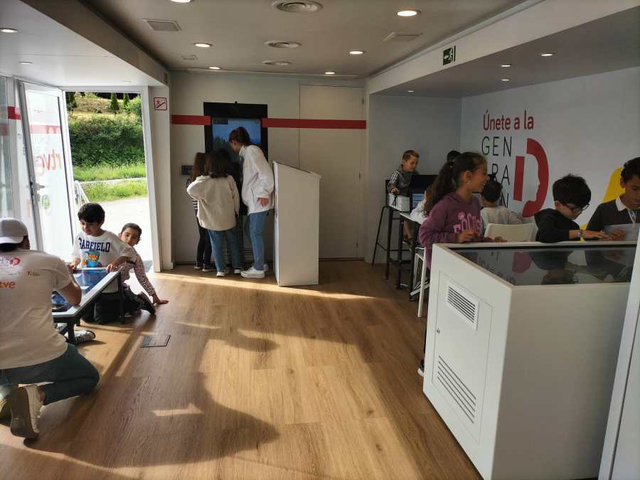 El pasado miércoles 11 de mayo, una de las seis unidades móviles del programa “Únete a la generación D” de RTVE hizo una parada en A Guarda y los cursos de 1º y 2º de Primaria hemos ido para participar en sus actividades.