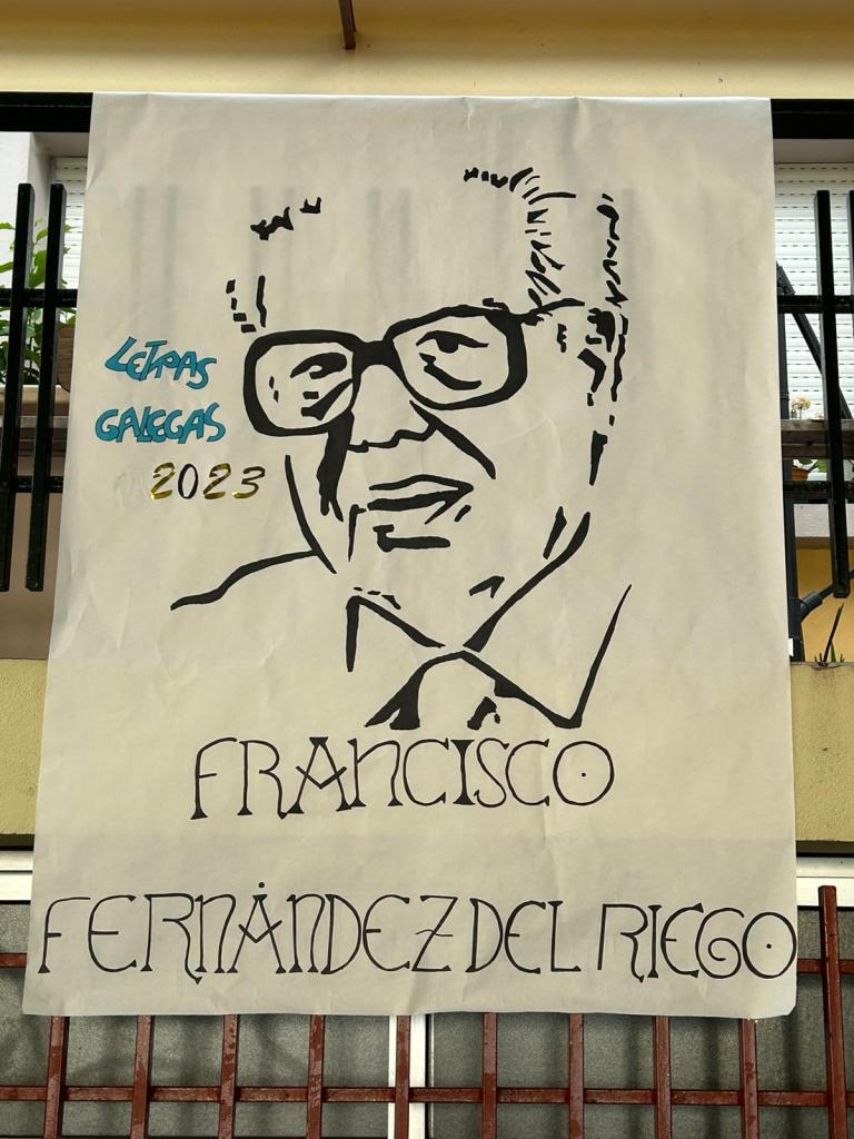 Nos días anteriores ao mércores 17 de maio, o alumnado do colexio acercouse á figura de Francisco Fernández del Riego para entender por que é o homenaxeado destas Letras Galegas 2023. Así, atendendo as diferentes idades, no centro intentouse que o escritor de Lourenzá fose recoñecido desde as súas diferentes facetas: activista, impulsor de grandes escritores galegos como Cunqueiro e Pedrayo, determinante na fundación da Editorial Galaxia, ilustre membro da RAG entre moitas outros méritos… pero resultou moi importante que o alumnado aprendera que foi el quen, en honra á publicación de Cantares Gallegos, instituíu o 17 de maio como Día das Letras Galegas.