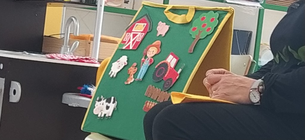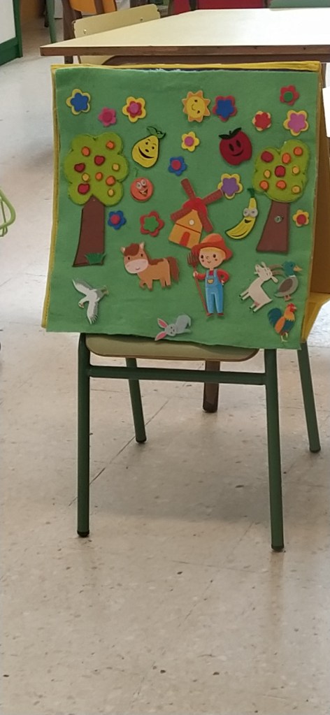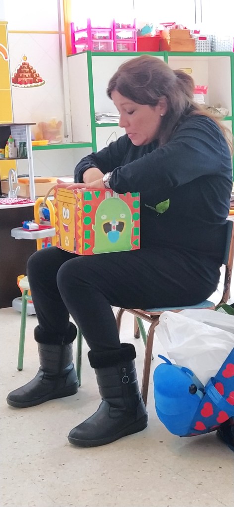 Deixounos moitos materiais para explicar aos rapaces o proceso da compostaxe; sirvan como exemplo, o conto da Granxa de Purrucha, peluches da Ra Bailarina e o Becho Bola, arañas e miñocas de plástico, caixas máxicas que reciclaban plásticos, papeis, chapas…