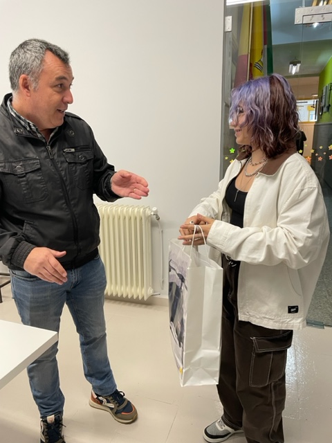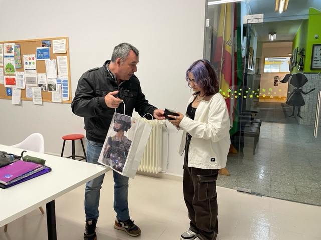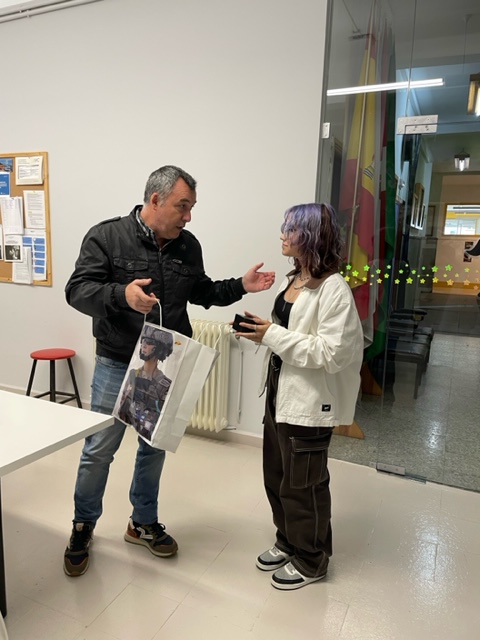 Daquela, trala entrega do diploma e a difusión dos traballos galardoados no podcast de Onda Cero, quedou pendente o envío doutros agasallos que hoxe, finalmente, lle foron entregados no centro por Raúl, responsable da sección de recrutamento da Subdelegación.