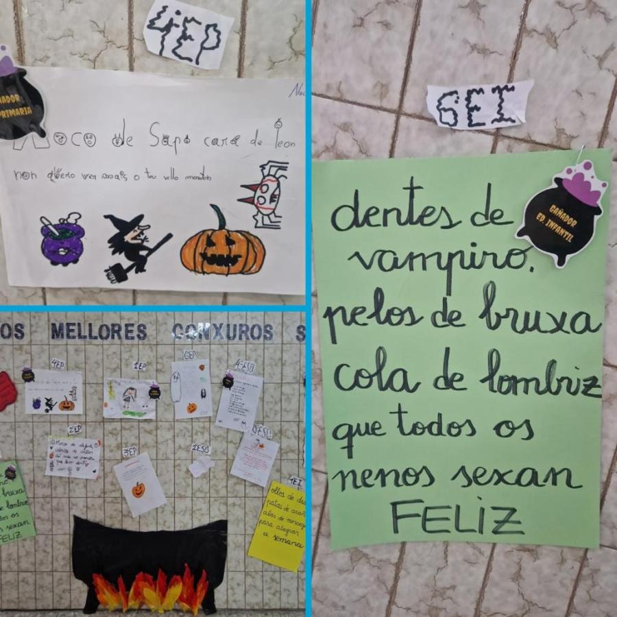 Os alumnos do Colexio PP. Somascos da Guarda – Fundación Educere, celebraron este martes 31 de outubro o día do Samaín (Halloween), asistindo moitos deles disfrazados ao colexio. Estiveron preparando este día dende a pasada semana. Para elo os nenos e nenas de cada ciclo decoraron clases e corredores cunha temática diferente: Educación Infantil “A Cova das bruxas”, Educación Primaria “O monte dos calacús”, e a ESO “O cemiterio do terror”. Tamén se fixo un concurso de conxuros, sendo elixido primeiro un por cada clase en votación interna, expoñéndose despois os escollidos nun espazo da entrada para que un xurado premiara os máis orixinais. Os premiados foros os conxuros de 6º EI, 1º e 4º de EP, e 2º e 4º da ESO. Ao final, todos pasamos unha terrorífica xornada de Samaín para ledicia da comunidade escolar no seu conxunto.
