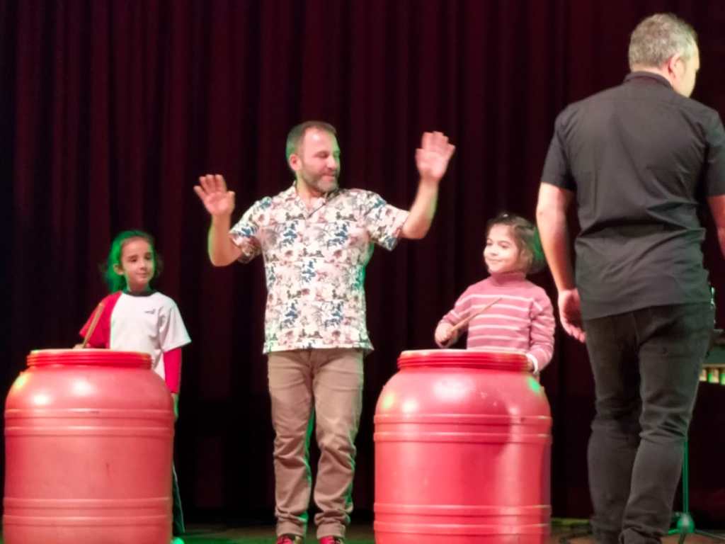 O alumnado de 1° e 2° de Primaria disfrutou da actuación escénica titulada Vaia ritmo! do grupo Odaiko Percusión Group, ofertada pola Afundación ABANCA.