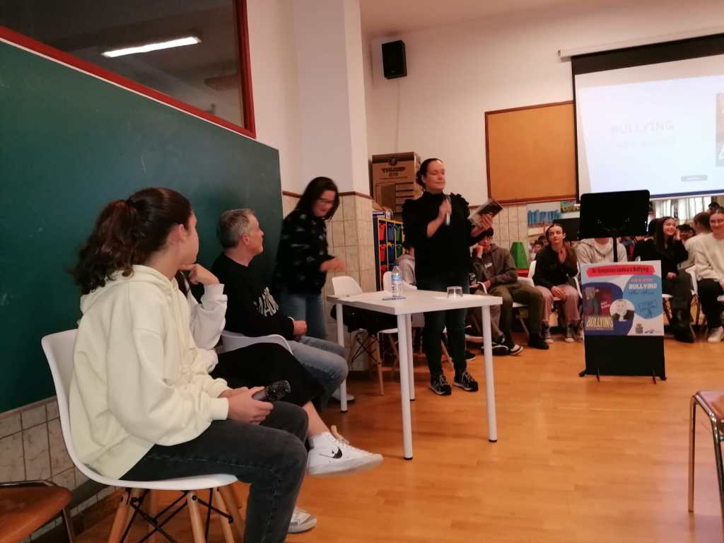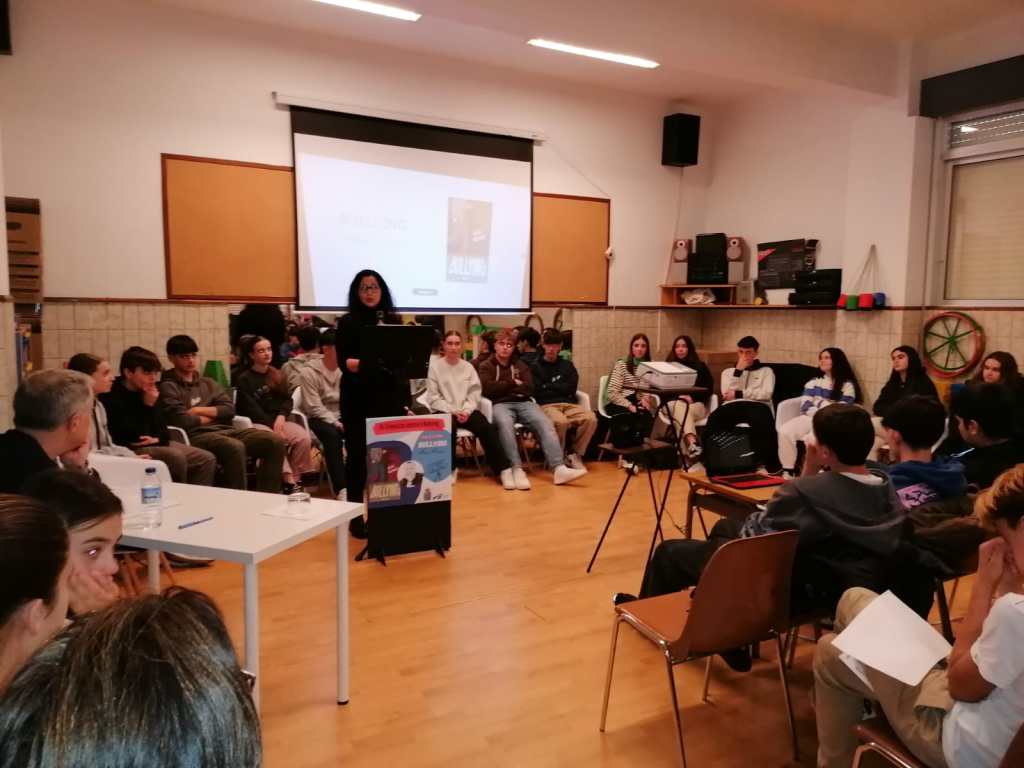 Este luns 4 de decembro, ás 4 da tarde, e como estaba previsto, tivo lugar no Colexio PP. Somascos da Guarda – Fundación Educere un encontro, aberto ás familias, co escritor Álex Alonso, autor do libro Bullying. Foi en si un acto académico xa que asistiron todos os alumnos da ESO en horario escolar. Eles mesmos presentaron o evento e ao autor, quen agradeceu enormemente a presenza de tantos mozos e mozas, que ademais se leran o seu libro; non en van o texto fora seleccionado polo Equipo de Dinamización Lingüística como obxecto de traballos curriculares e probas académicas. A continuación iniciouse unha rolda de preguntas que os alumnos tiñan preparadas para facerlle ao autor, a cal resultou moi amena a interesante. A continuación interveu a psicóloga do centro para recordar que este acto enmárcase na campaña que está levando a cabo o colexio PP. Somascos contra o bullying ou acoso escolar, no marco do seu Plan de Convivencia. Interveu tamén unha nai agradecendo esta experiencia co propio autor desexando que poida ser de utilizade no futuro para a xuventude de hoxe en día. E finalmente na despedida houbo un recoñecemento á profesora de Galego como artífice da iniciativa, quen ofreceu uns agasallos ao autor invitado Álex Alonso. Rematado o acto os alumnos formaron unha longa fila para que o escritor lles firmase os seus exemplares. Se dúbida unha xornada cargada de emotividade e concienciación para os mozos e mozas alí presentes.