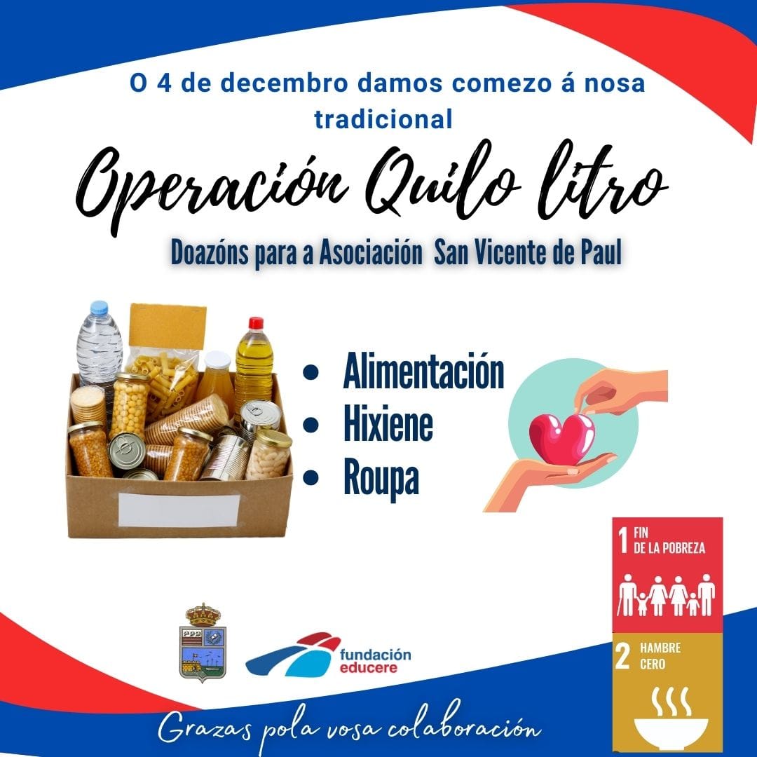 Este luns 4 de decembro o Colexio PP. Somascos da Guarda – Fundación Educere inicia a tradicional «Operación quilo-litro», isto é, a súa campaña anual de recollida de alimentos e produtos de hixiene, e tamén –como novidade este ano– de roupa, para os máis vulnerables da nosa sociedade. Esta campaña, realizada en colaboración coa Asociación San Vicente de Paúl, é un sinal de identidade do noso colexio, arrancando sempre en paralelo ao Advento, un tempo litúrxico de preparación para o nacemento de Xesús; un tempo de solidariedade, de axuda e de entrega. Encaixa ademais cos Obxectivos do Desenvolvemento Sostible (ODS) que propón a ONU: «Fin da pobreza» e «Fame cero». Sen dúbida a nosa comunidade educativa amosará un ano máis a súa habitual xenerosidade social, proxectada nesa imaxe diaria dos nenos e nenas portando, cun sorriso nos beizos, ese paquetiño de arroz ou ese cartonciño de leite.