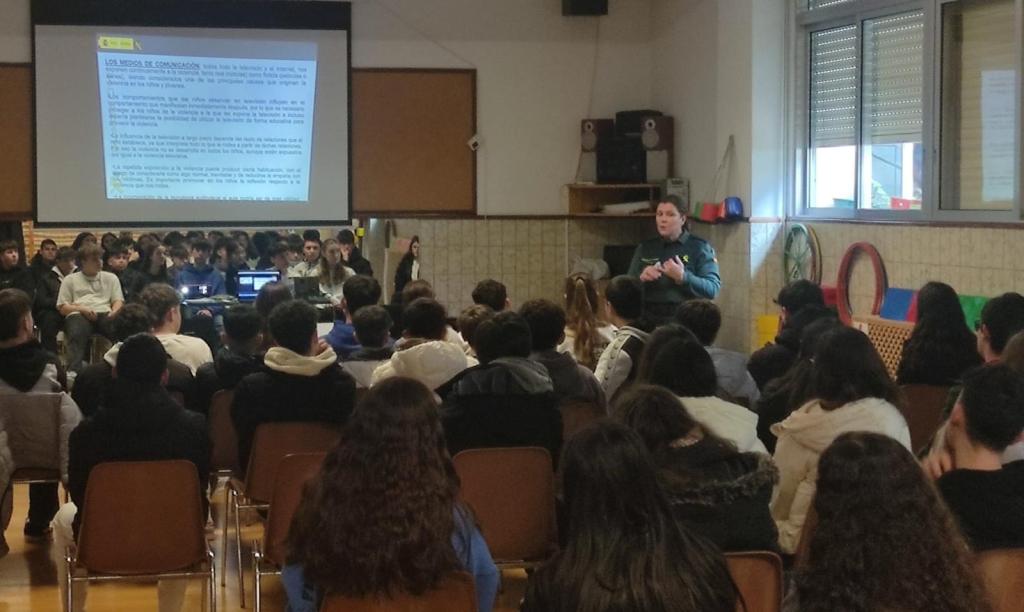 Dentro del Plan Director de la Guardia Civil, el alumnado de secundaria asistió a una charla de prevención sobre el acoso escolar.