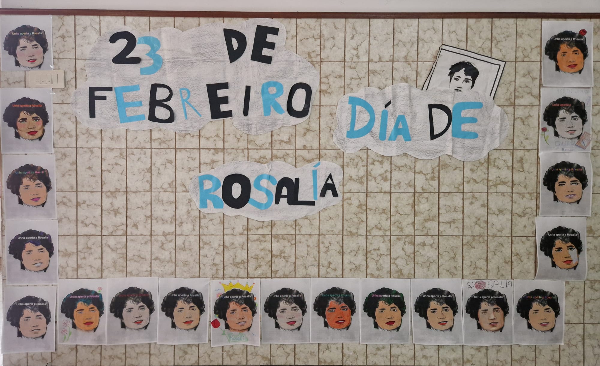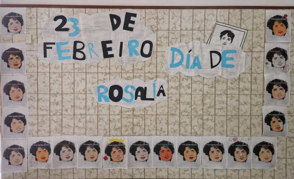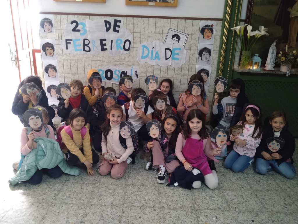 Este venres 23 de febreiro de 2024 o Colexio PP. Somascos da Guarda – Fundación Educere conmemorou o día de Rosalía de Castro, a máis senlleira escritora galega de todos os tempos. Por tal motivo se lle fixo unha homenaxe baixo o lema «Unha aperta a Rosalía», atendendo ao lema do colexio deste ano: «abrazo o respecto». Para elo nos diferentes cursos se realizaron actividades en liña, debuxos, recitado dos seus versos, etc. E finalmente todos os alumnos elaboraron unha careta personalizada da propia Rosalía coa que culminaron a celebración deste día.