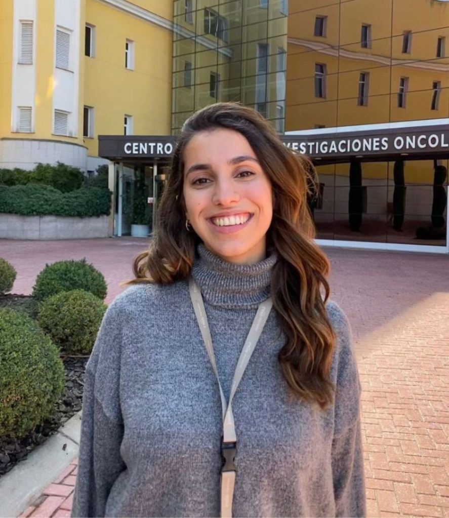 “Graduada en Biología y Química por la UDC, se desplazó a Madrid para hacer un máster en Biomedicina en la Complutense. Realizó su trabajo de fin de máster en el Centro Nacional de Investigaciones Oncológicas (CNIO), donde ahora cursa un doctorado en Biología Molecular y Bioquímica”.