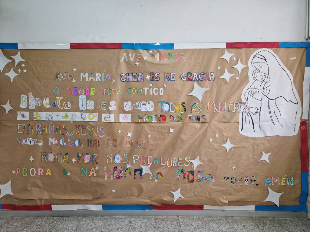 Mes da Virxe 17Mai 2024 Neste mes da maio, levamos a cabo unha actividade na que rendemos homenaxe a María. Así, cada curso preparou un anaco do “Avemaría” para compoñer dita oración á nosa Nai. Comparte: Fai clic para compartir en X (Se abre en una ventana nueva) X Feixe clic para compartir en Facebook (Se abre en una ventana nueva) Facebook Compartir en Linkedin (Se abre en una ventana nueva) LinkedIn Compartir en Tumblr (Se abre en una ventana nueva) Tumblr Compartir en Pinterest (Se abre en una ventana nueva) Pinterest Compartir en Pocket (Se abre en una ventana nueva) Pocket Feixe clic para compartir en WhatsApp (Se abre en una ventana nueva) WhatsApp Gústame Cargando...