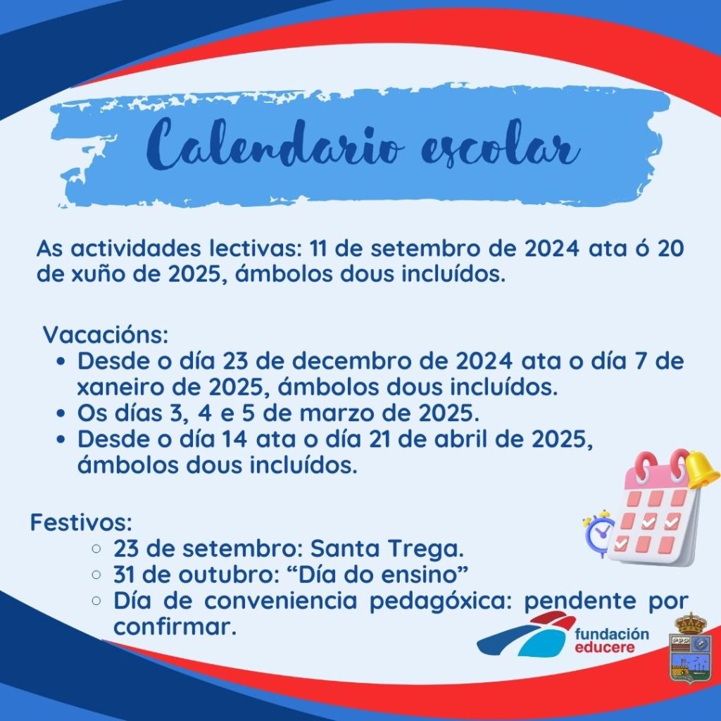 O calendario escolar será o seguinte: