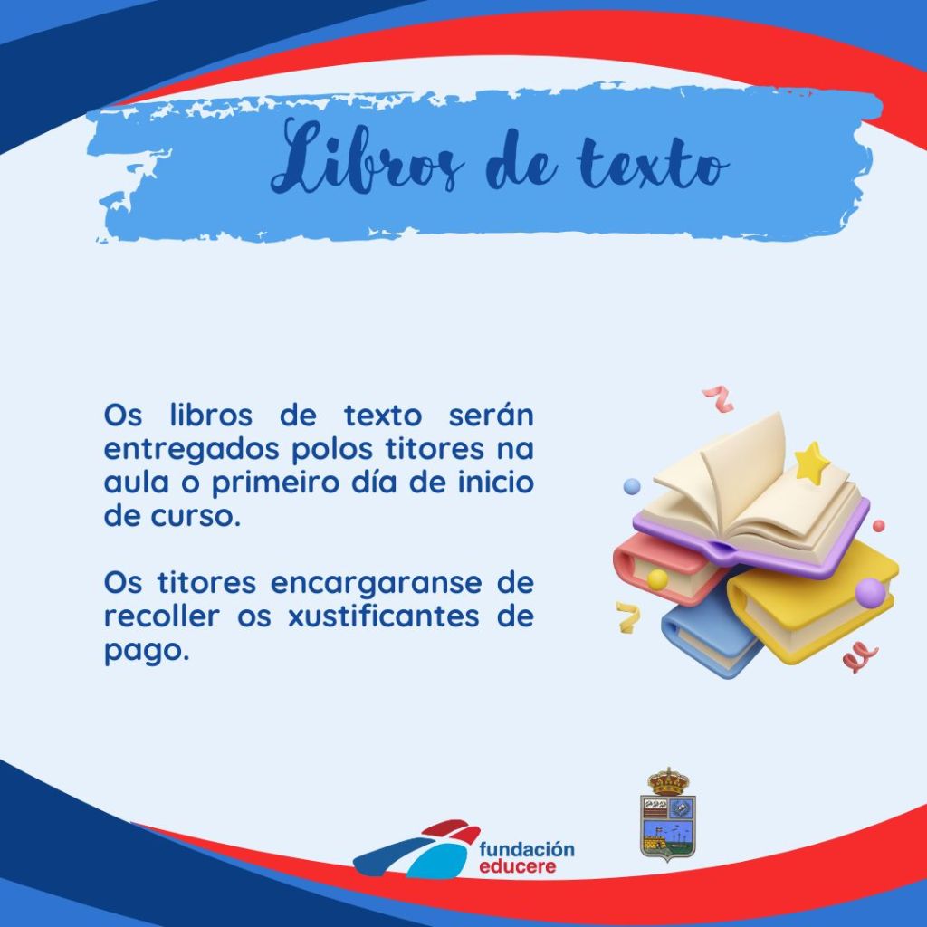 Libros de texto 3Set 20245 Set 2024 Os libros de texto serán entregados polos titores na aula o primeiro día de inicio de curso. Os titores encargaranse de recoller os xustificantes de pago. Comparte: Fai clic para compartir en X (Se abre en una ventana nueva) X Feixe clic para compartir en Facebook (Se abre en una ventana nueva) Facebook Compartir en Linkedin (Se abre en una ventana nueva) LinkedIn Compartir en Tumblr (Se abre en una ventana nueva) Tumblr Compartir en Pinterest (Se abre en una ventana nueva) Pinterest Compartir en Pocket (Se abre en una ventana nueva) Pocket Feixe clic para compartir en WhatsApp (Se abre en una ventana nueva) WhatsApp Gústame Cargando...