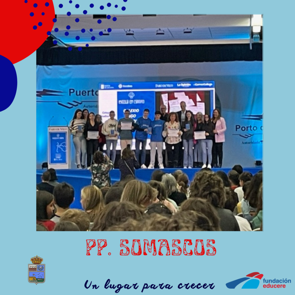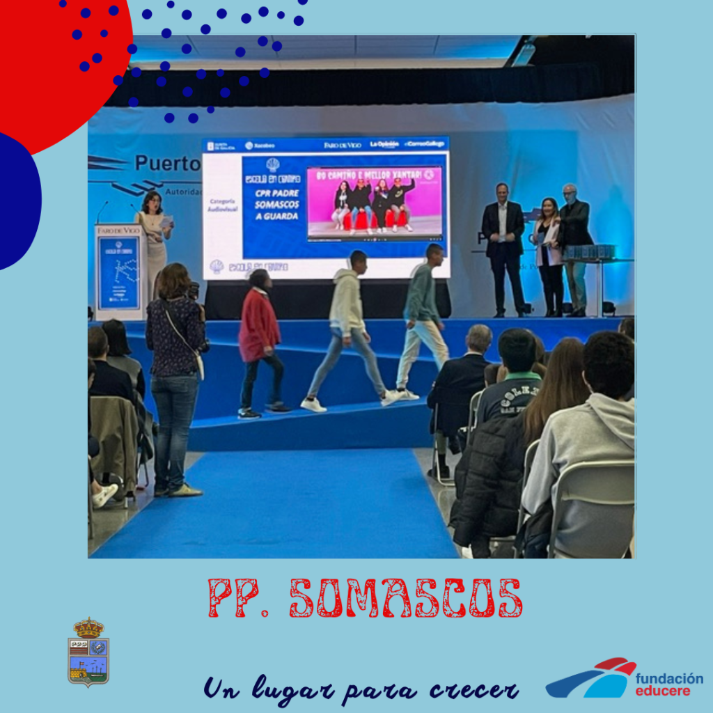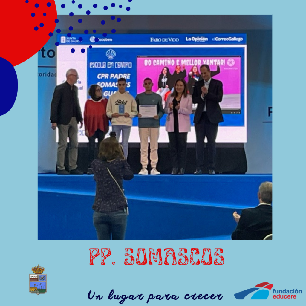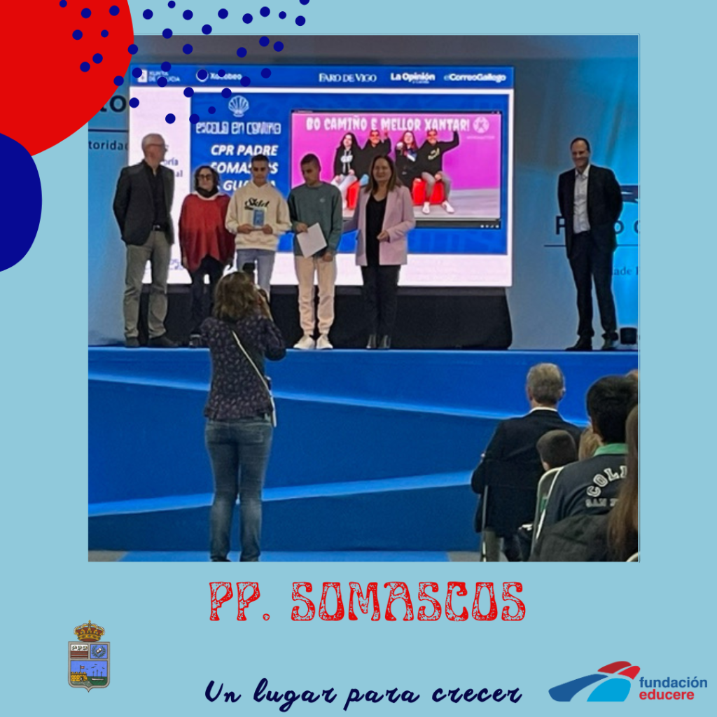 O acto, celebrado este xoves 10 de outubro na Estación Marítima, contou coa presenza do Presidente da Xunta e outras autoridades. En representación do colexio, o grupo de 3º ESO acompañou aos alumnos autores do traballo, un vídeo titulado “ Bo Camiño e mellor xantar!”, consistente nunha reseña das delicias gastronómicas dos concellos do Camiño pola Costa.
