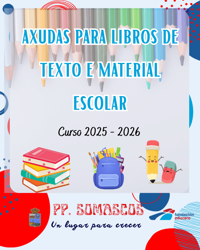 No DOG do 15 de maio publica a ORDE do 28 de abril de 2025 pola que se regula a participación no fondo solidario de libros de texto e se convocan axudas para adquirir libros de texto e material escolar destinadas ao alumnado matriculado en educación primaria, educación secundaria obrigatoria e educación especial en centros docentes sostidos con fondos públicos para o curso escolar 2025/26 (códigos de procedemento ED330B, ED330G e ED330H). Adxunto dita orde así como as instrucións do Fondo solidario de libros de texto e das Axudas para adquirir libros de texto e material escolar. Podedes pasar pola secretaría do centro co fin de xestionar estas axudas.