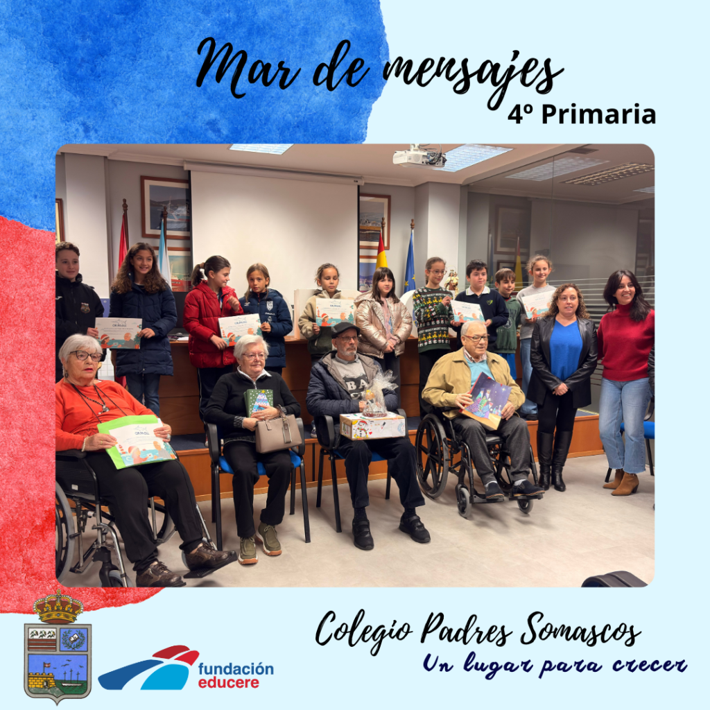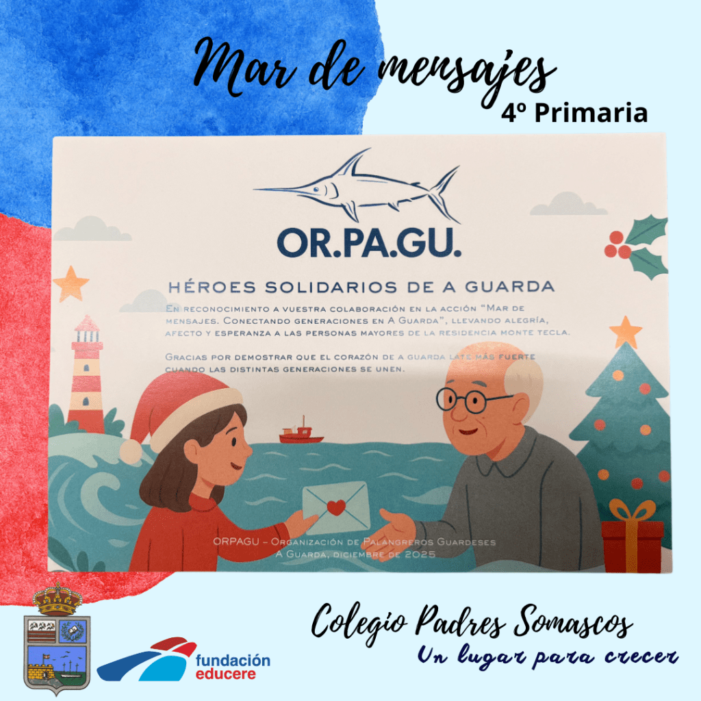 O alumnado de 4º de Primaria participou na iniciativa de ORPAGU “Mar de mensajes”, onde cada alumno realizaba un debuxo, unha tarxeta ou unha carta de felicitación de Nadal, para os usuarios da Residencia Monte Tecla. Ao acto acudiron unha representación de cada clase, leron as cartas e lle fixeron entrega das postais. Unha actividade mol emotiva que une as persoas maiores cos mais cativos. Noraboa pola proposta! #colegiopadressomascos #unlugarparacrecer #somoseducere #residenciamontetecla #orpagu #primaria #mardemensajes #postales #felicitacióndenavida #ntercambios #Héroessolidarios @residenciamontetecla @orpagucalidad @fundacion_educere