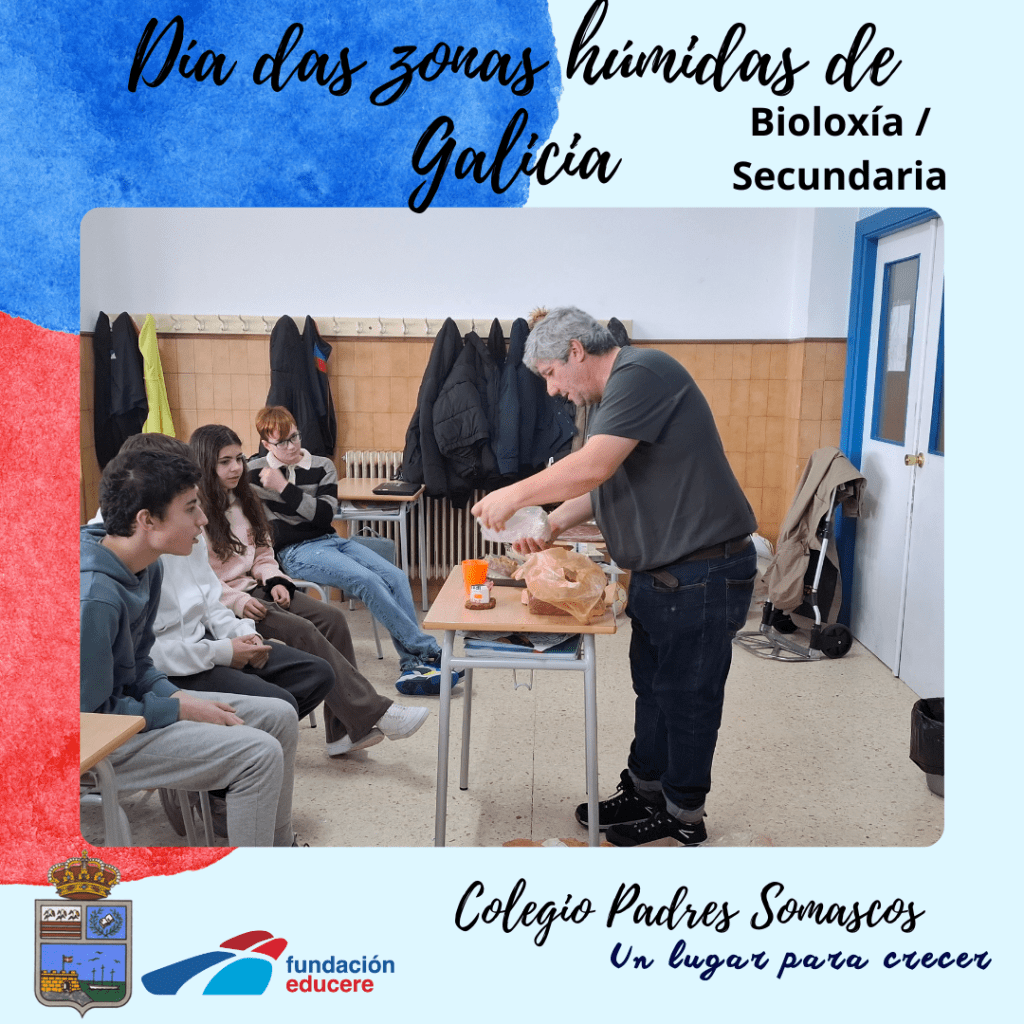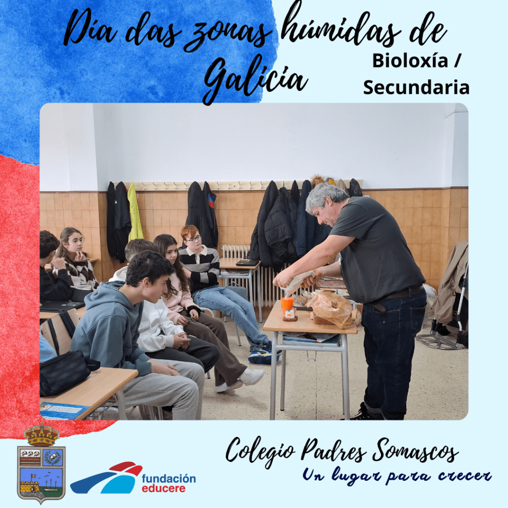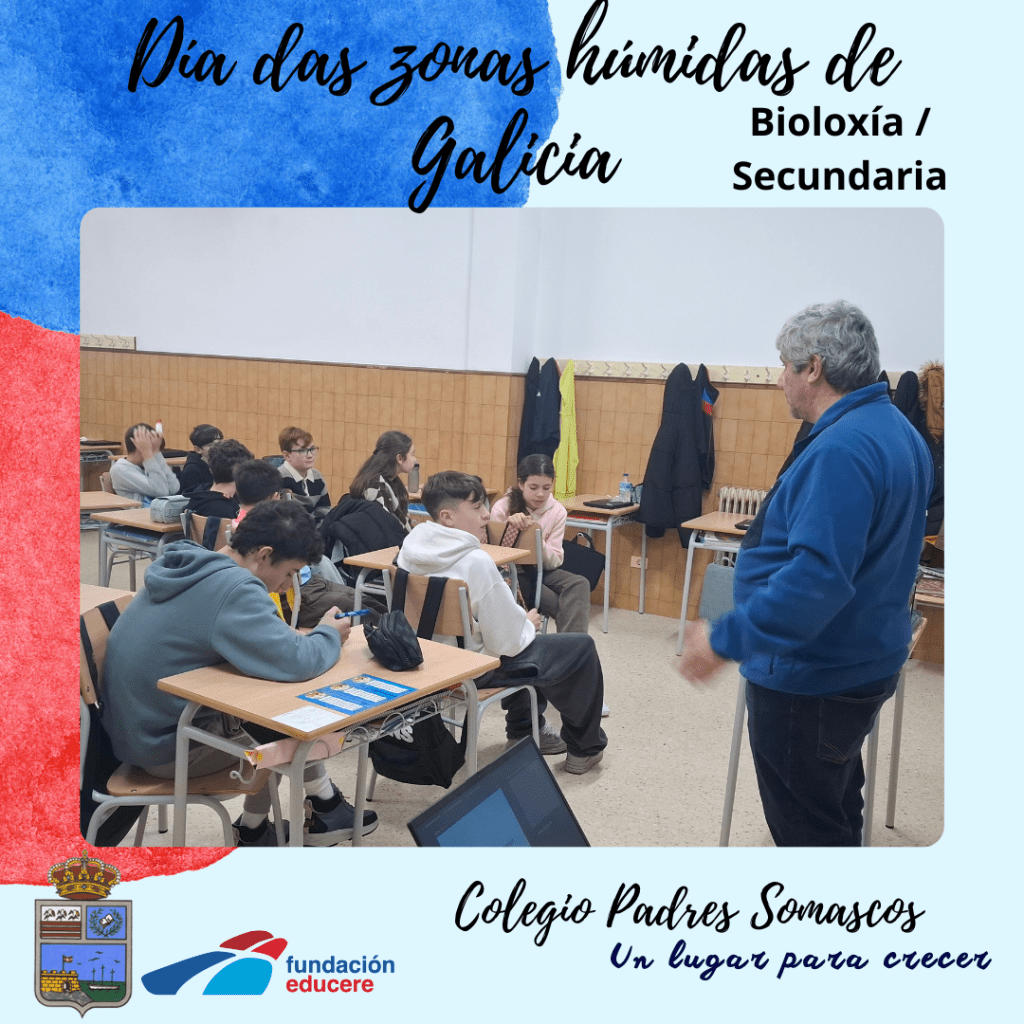 O pasado xoves, día 5, o alumnado de 1º de ESO, na clase de Bioloxía, participou nunha xornada de formación ambiental adicada a poñer en valor as zonas húmidas de Galicia. Durante unha sesión, os estudantes afondaron no coñecemento de ecosistemas fundamentais como ríos, os humedais, as xunqueiras e os bosques, analizando a súa importancia para o equilibrio ecolóxico do noso territorio.